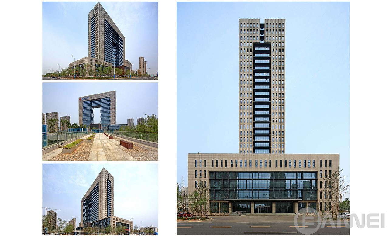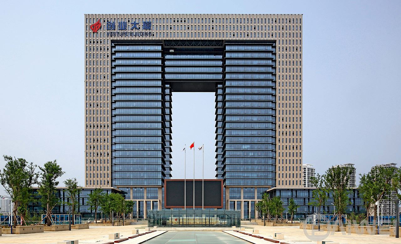 項目位于煙臺市煙臺CBD科技高新區(qū)的A區(qū),為高新園區(qū)重要核心建筑,兼顧高新區(qū)管委會辦公用房。規(guī)劃布局將其設(shè)置于核心景觀動力軸中心,是整個園區(qū)的點(diǎn)睛之筆。創(chuàng)業(yè)大廈設(shè)計突出“創(chuàng)業(yè)之門”的設(shè)計理念,整體建筑呈簡潔方整的“門”形。本工程結(jié)構(gòu)高度127.5米,地上建筑最高點(diǎn)為132.6米,為復(fù)雜高位大跨連體結(jié)構(gòu)。項目全方位引入綠色設(shè)計理念,在總圖布局、建筑單體的被動式能源利用、建筑節(jié)能設(shè)備、職能配套和建筑材料節(jié)能“空中花園”的辦公模式引入等多個角度,打造新時代的綠色辦公建筑。