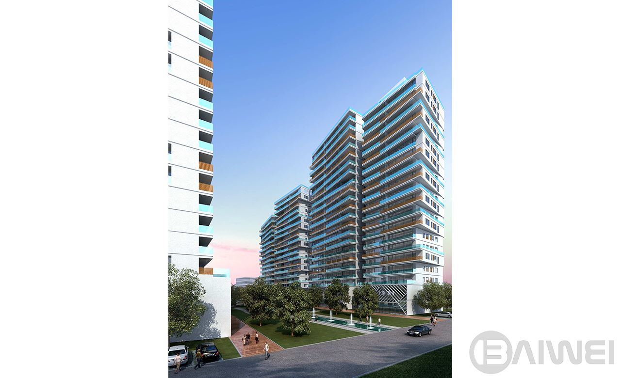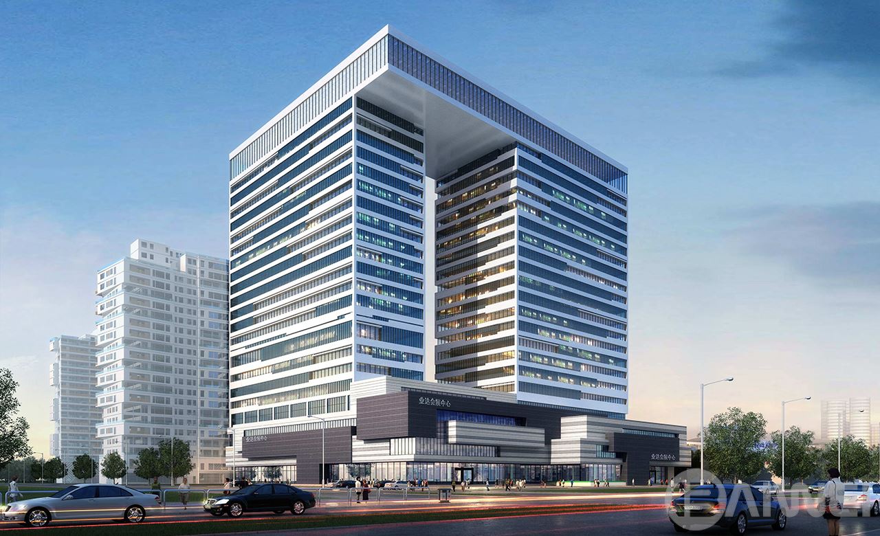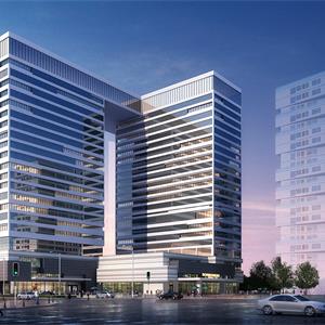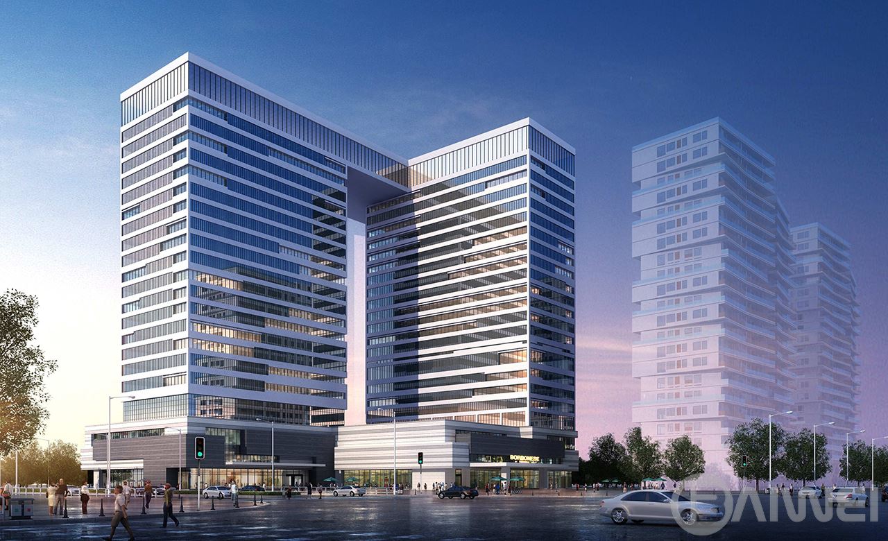 CBD中央商務(wù)區(qū)在立面、造型的建筑設(shè)計(jì)上,緊扣簡潔高效的主題,以橫向線條為主,通過豐富又不失規(guī)律的變化讓建筑充滿了韻律感。建筑主體形體布局采用了L型雙塔布局也是做了充分的研討,這樣同時(shí)照顧到了206國道方向以及長江路主干路的沿街面效果。