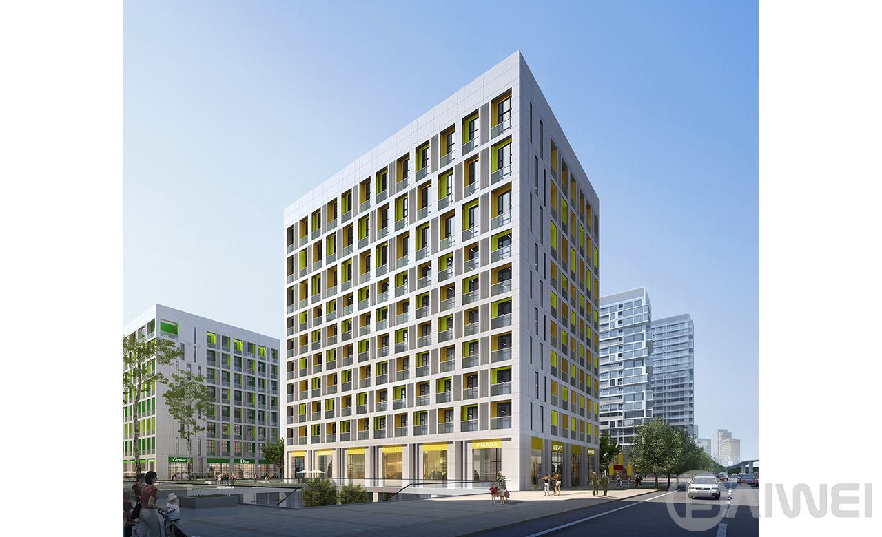 1#~5#樓為8~10層高層辦公樓,6#、7#樓為兩層商業(yè)樓,地下一層為大地盤地下汽車庫。