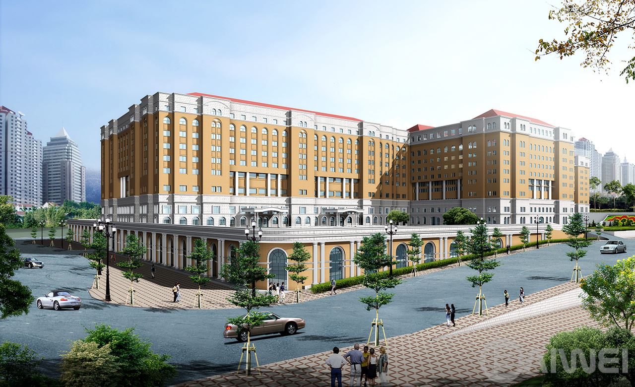 地塊A、B主樓主要采用明亮的淺暖色調(diào)及豎向線條的落地窗,與在建的銀都財富中心相協(xié)調(diào),裙房商業(yè)采用淺色與深色石材相間,并以歐式壁柱點綴,外觀簡潔明快,同時與現(xiàn)有毓璜頂醫(yī)院建筑適當?shù)暮魬?。地塊C延續(xù)了原有毓璜頂醫(yī)院的外觀風格,主要以磚紅色面磚及灰色石材飾面,同樣采用了歐式裝飾柱與老建筑相呼應,使新老醫(yī)院建筑渾然一體。