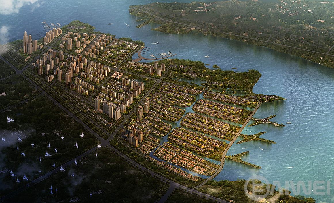 充分利用用地內(nèi)天然的養(yǎng)馬島山景、海景,以及再造的中心水景、林景等多層次的自然景觀,強(qiáng)化核心景觀軸、特色景觀帶和組團(tuán)景觀點(diǎn)上的 〃水生(海生)±也景〃概念,營(yíng)造清幽自然的氛圍。