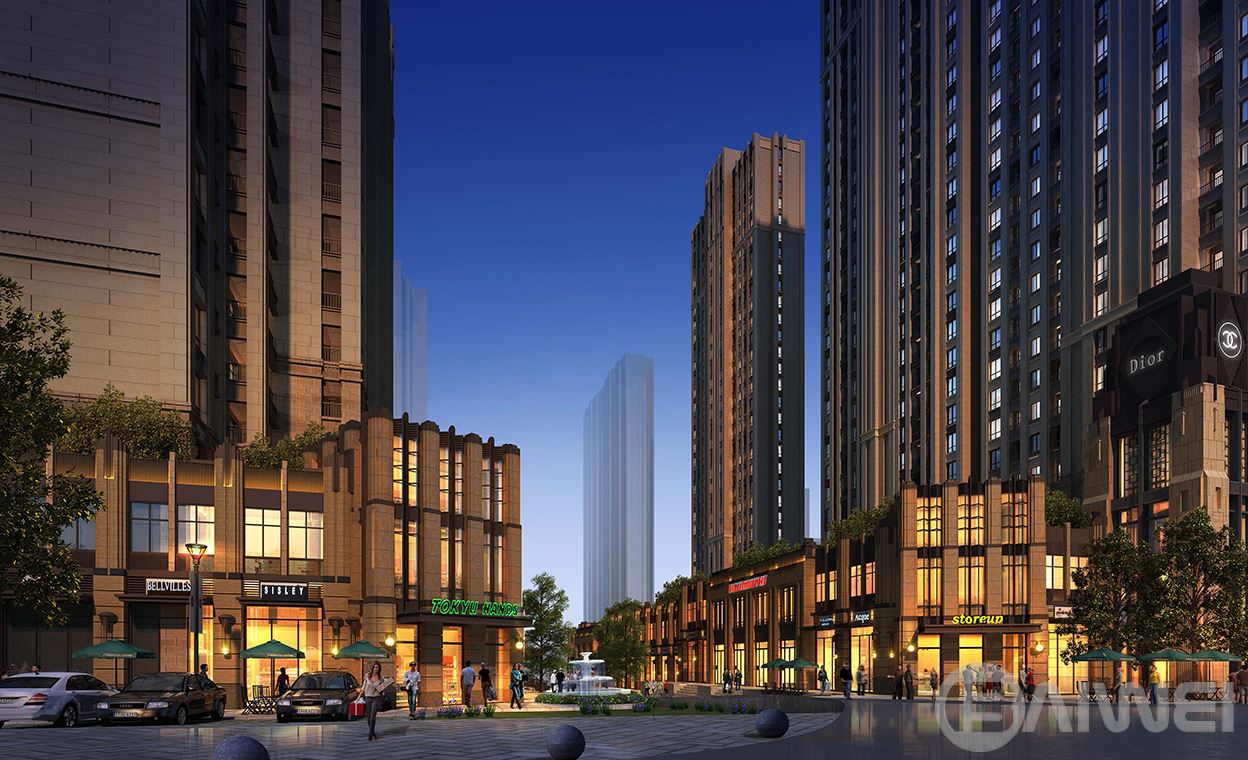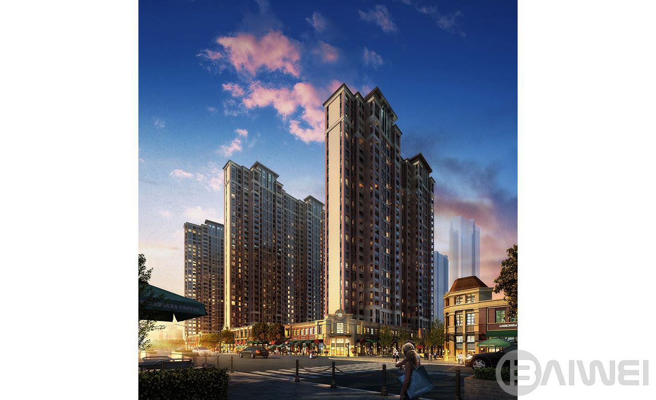 項目位于煙臺市高新區(qū)濱海路南側(cè)北寨村,地塊整體西北高東南低。規(guī)劃采用南北布局,北區(qū)A1地塊為商品房區(qū),南區(qū)A1’地塊為回遷房區(qū),南北兩區(qū)中間布置商業(yè)街。項目規(guī)劃重點為營建優(yōu)美的居住社區(qū),創(chuàng)造宜人的住宅小區(qū)環(huán)境,提升高新區(qū)住宅檔次,在考慮社會效益、環(huán)境效益的同時提升的建筑規(guī)模,采用英式風格,盡量簡化建筑的立面輪廓,體現(xiàn)出典雅,大氣的視覺效果,造型和色彩達到有機的統(tǒng)一,體現(xiàn)整個小區(qū)的文雅、穩(wěn)重,與整個城市風貌共生。建筑采用英式風格,住宅建筑立面材質(zhì)以紅磚和仿石涂料為主,商業(yè)建筑立面材質(zhì)以石材和紅磚為主。