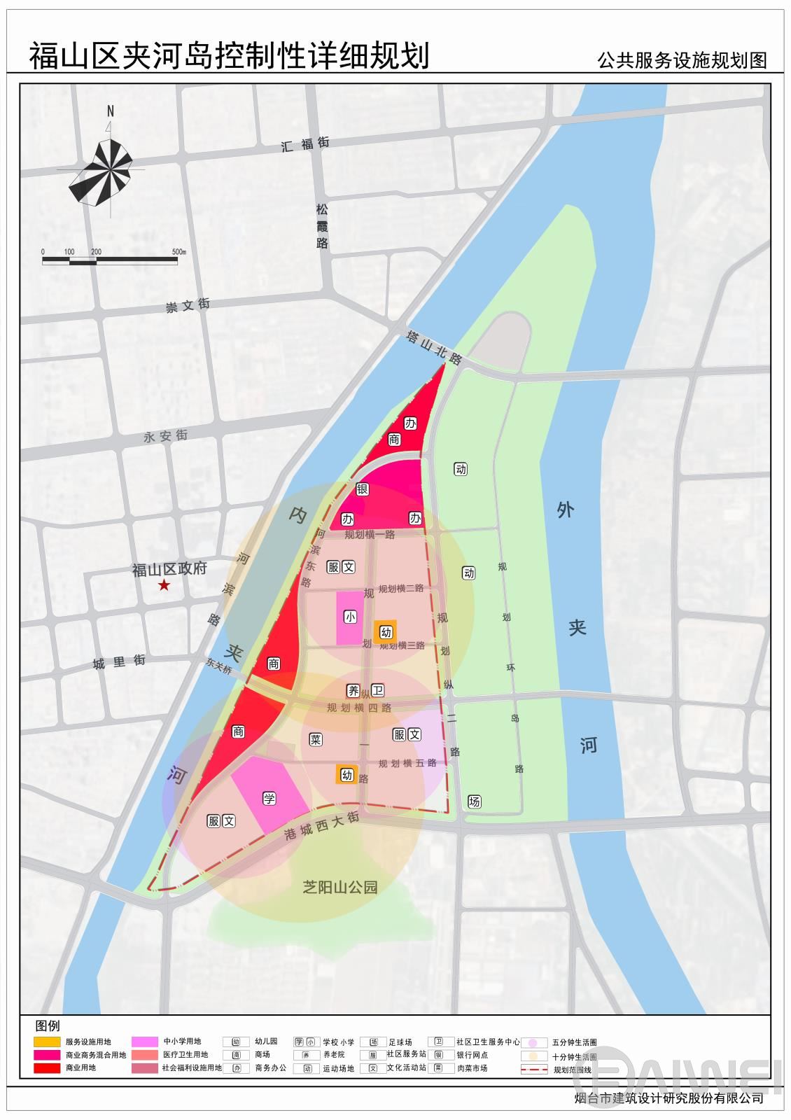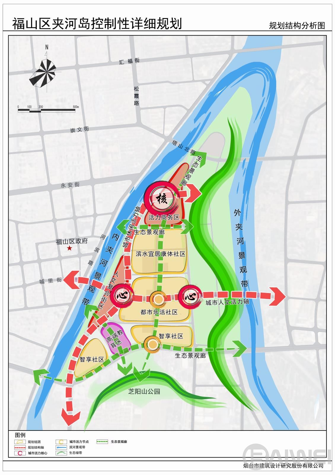 本項目位于煙臺市福山區(qū)東部夾河新城片區(qū),規(guī)劃范圍西至內(nèi)夾河東岸,北臨內(nèi)外夾河交匯處,東接水源地保護線,南至港城西大街,總用地面積約1.05平方公里。規(guī)劃以生態(tài)功能為依托、集智慧創(chuàng)新、文化功能于一體形成煙臺市西南商業(yè)中心、煙臺生態(tài)魅力智慧島;集商業(yè)商務(wù)、文化創(chuàng)意、旅游休閑、生活居住四大功能為一體的煙臺市夾河新城中心。