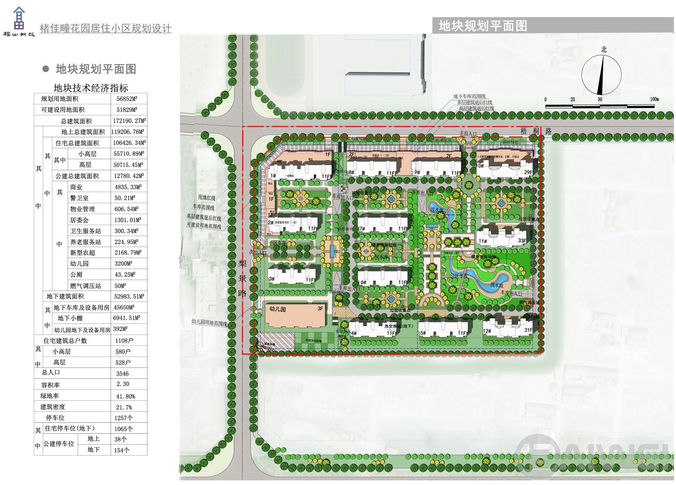 二、規(guī)劃在北側(cè)梧桐路設(shè)置主要出入口,西側(cè)梨景路設(shè)置次要出入口,小區(qū)內(nèi)部設(shè)環(huán)行路,沿景觀軸線設(shè)步行路。小區(qū)停車地上、地下兩種形式,住宅共設(shè)1065個車位,滿足每百平米1個車位要求。