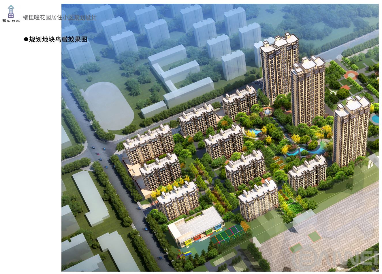 三、規(guī)劃超大社區(qū)空間,結(jié)合雨水花園,打造社區(qū)中心景觀;與宅間綠地有機(jī)結(jié)合,形成系統(tǒng)。