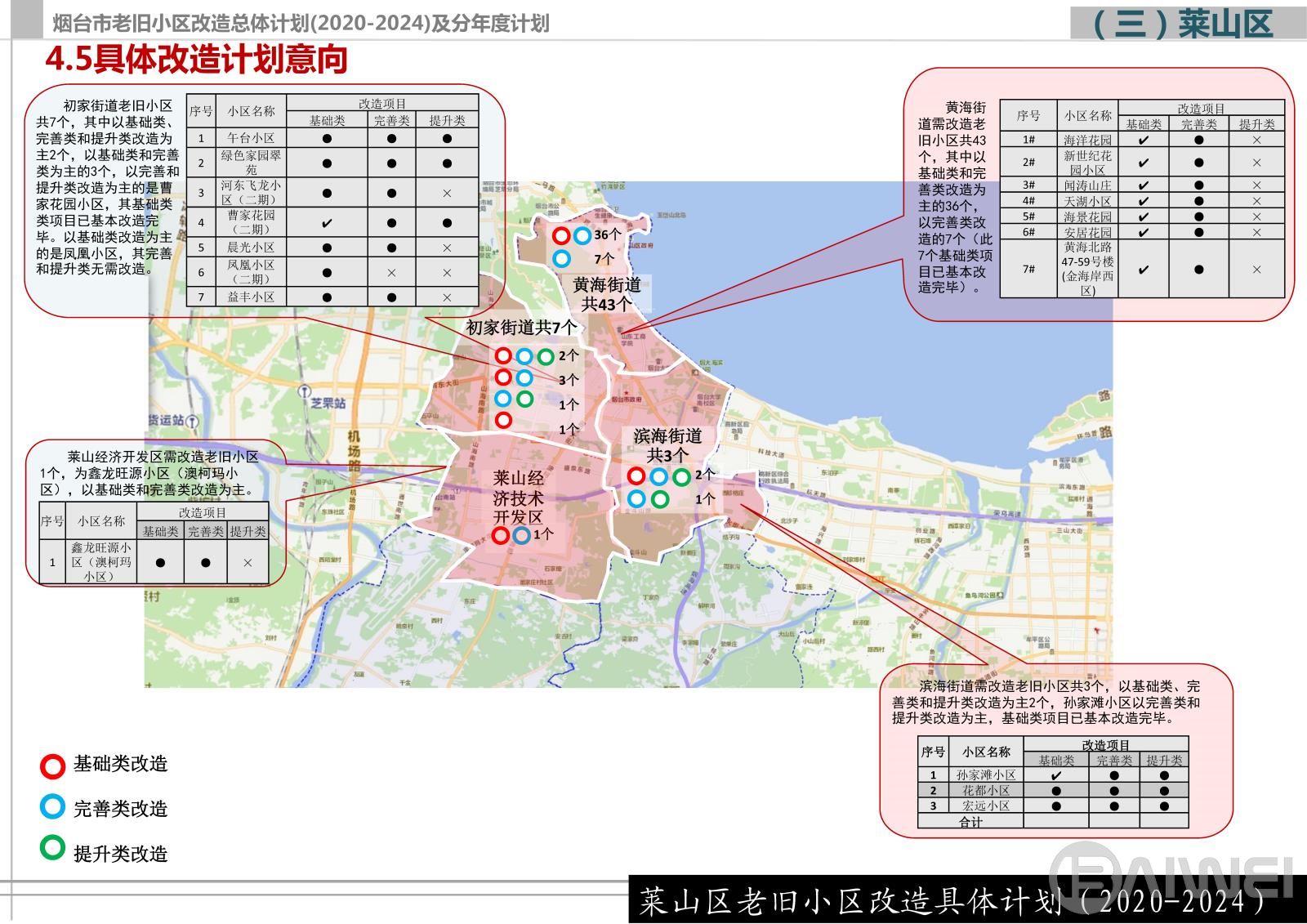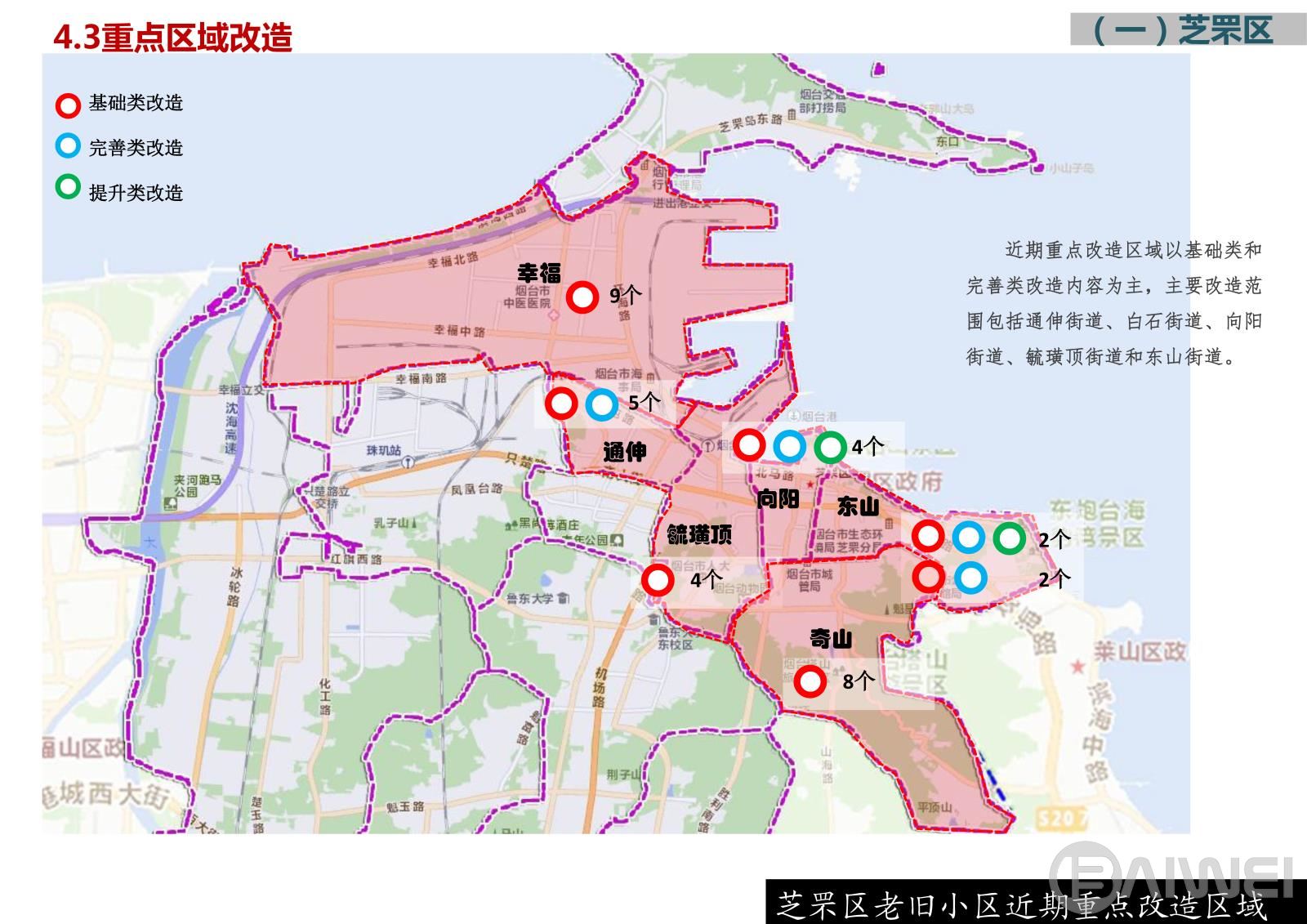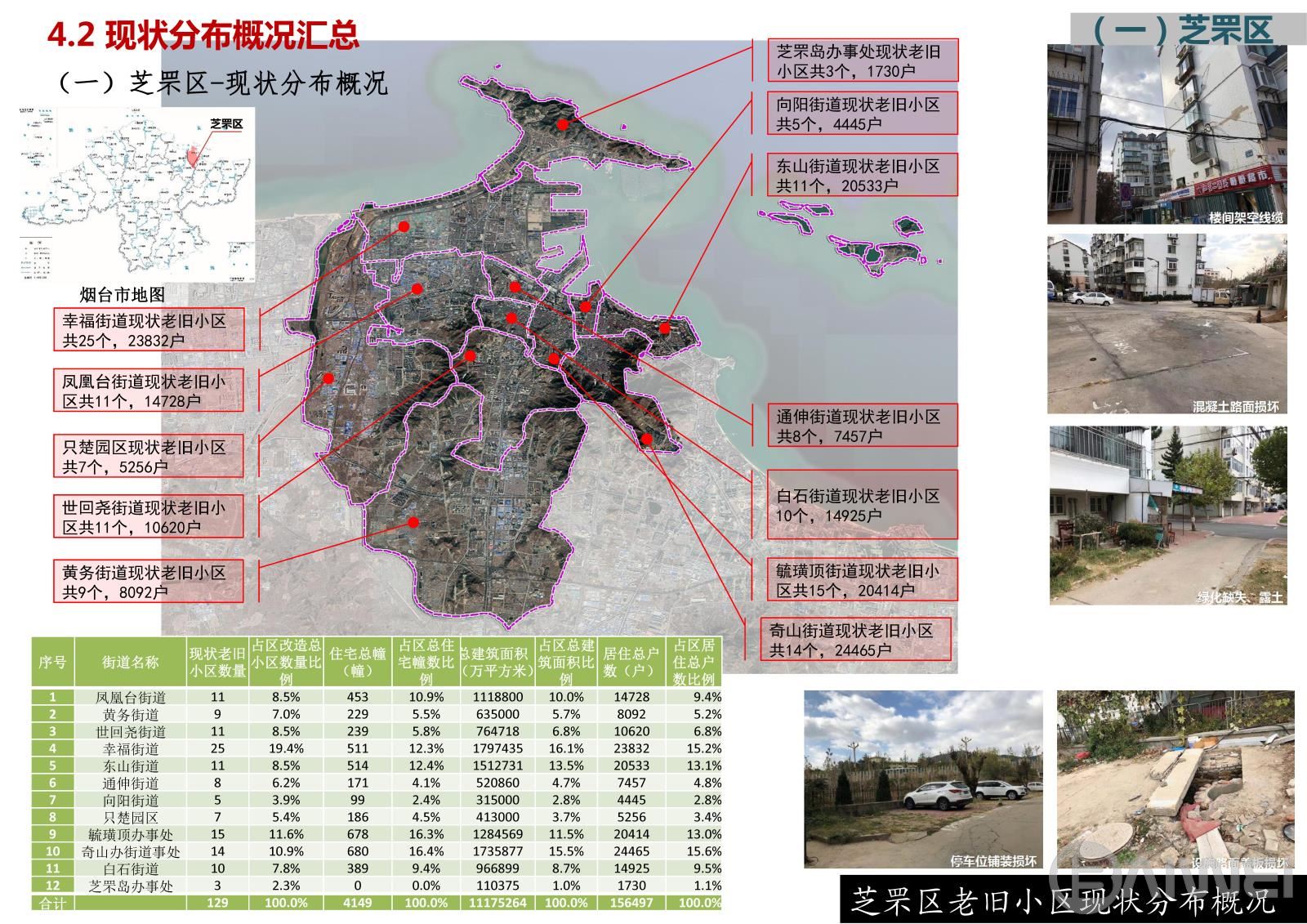 煙臺市的老舊小區(qū)改造工程雖然在不斷向前推進(jìn),老舊小區(qū)改造對于城市存量住區(qū)空間的發(fā)展以及煙臺市的城市發(fā)展有重要意義。本次老舊小區(qū)改造計(jì)劃范圍指煙臺市城區(qū)或縣城國有土地上2005 年12 月31 日前建成,失養(yǎng)失修失管嚴(yán)重、市政配套設(shè)施不完善、公共服務(wù)和社會服務(wù)設(shè)施不健全、居民改造意愿強(qiáng)烈的住宅小區(qū)。擬對居民進(jìn)行征收補(bǔ)償安置,或者擬以拆除新建(含改建、擴(kuò)建、翻建)方式實(shí)施改造的住宅不得納入老舊小區(qū)改造范圍。改造計(jì)劃期限為2020-2024年。